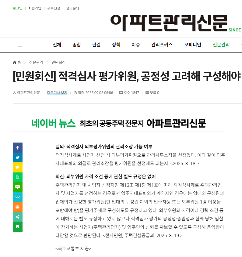 [민원회신] 적격심사 평가위원, 공정성 고려해 구성해야...
