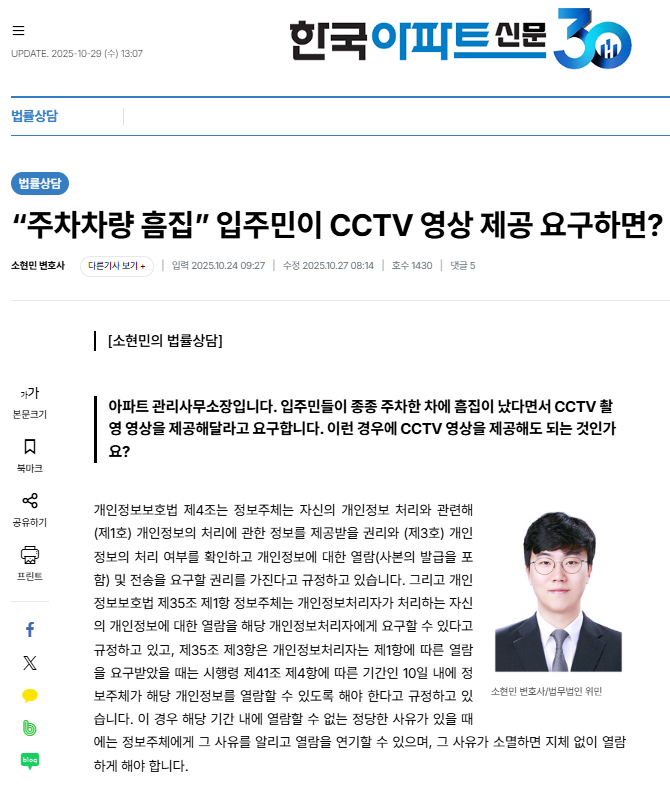 “주차차량 흠집” 입주민이 CCTV 영상 제공 요구하면?